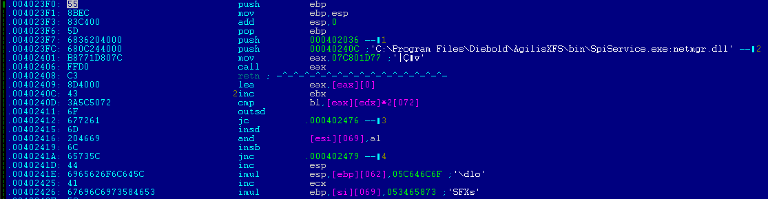 Nach einer erfolgreichen Installation wird der Geldautomat neu gebootet. Die schädliche Bibliothek wird dank dem neuen LoadLibrary-Aufruf in die Datei SpiService.exe geladen und stattet sie mit uneingeschränktem Zugriff auf das XFS aus.